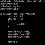0x01 x86과 x86_64의 차이점 메모리 주소크기가 64비트이지만 첫 47비트 공간만을 사용한다 그래서 0x00007fffffffffff 보다 큰 주소값을 지정했다가는 예외가 발생한다고 한다. 0x4141414141414141은 얘외가 발생하고 0x0000414141414141은 예외가 발생하지 않는다고 합니다. 즉 이게 문제인점은 우리가 만일 4개의 바이트를 빼고 덮으면 예외가 되지않고 정상실행이 되는거네요 퍼징할때는 아무래도 그냥 무작정 덮는데 만일 4byte를 빼고 퍼징이 돌려지면 취약점이 아닌것처럼 보여질수도 있겠다는 얘기가 되겠네요 0x02 취약한 코드 ` 이렇게 됩니다. 기본적으로 64bit환경에는 메모리 보호기법이 포함되어있어서 stack기반으로는 될수 없다고 보면됩니다. 그래서 컴파일..
